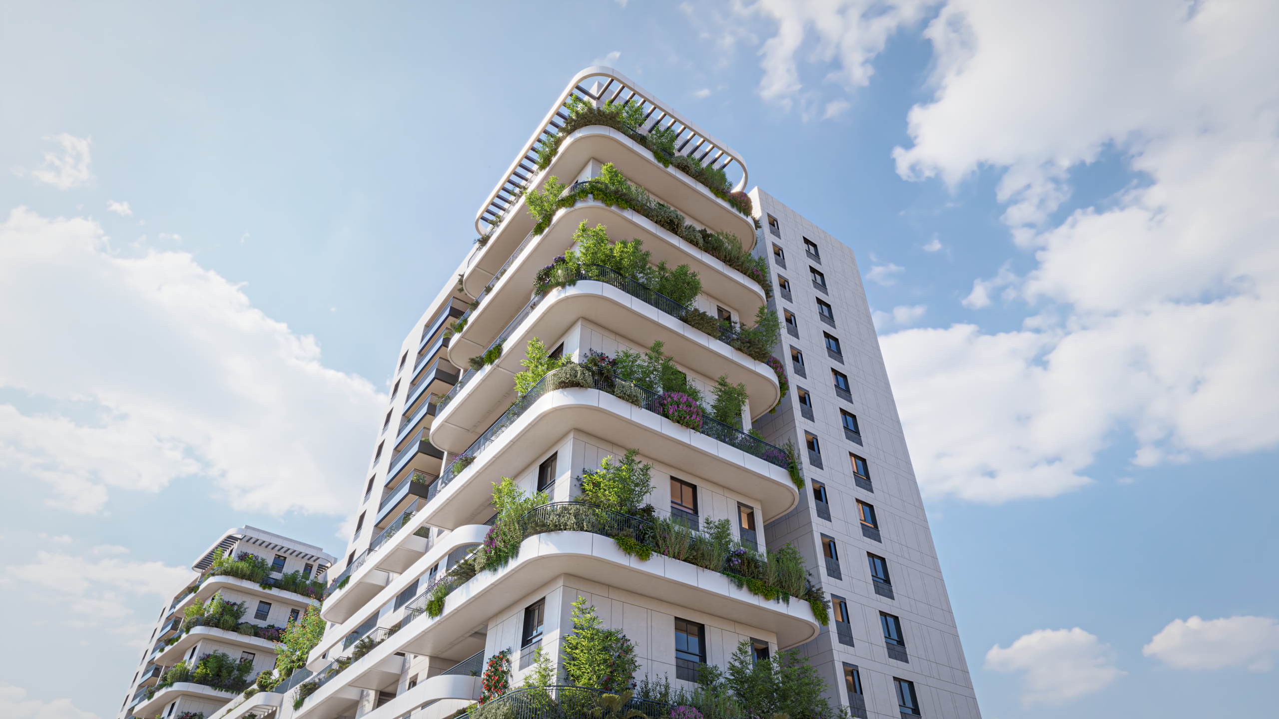 הפרויקט משלב אלמנט ייחודי של גינות תלויות על חזיתות המבנים, אשר יוצרות מראה מרהיב שמשתנה בהתאם לעונות השנה.