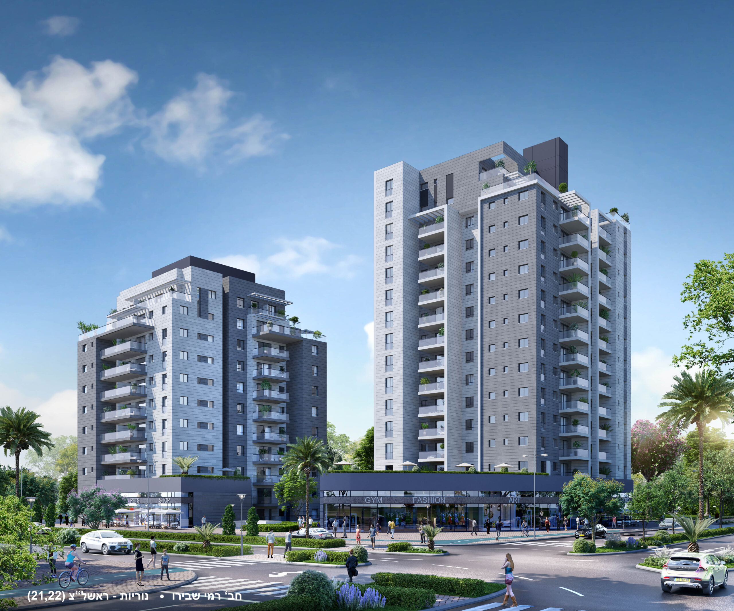 The residential project in the Nuriyot neighborhood in Rishon LeZion spans approximately 50 dunams and includes 22 plots, 11 of which are planned as mixed-use complexes integrating residential buildings with active commercial frontages.